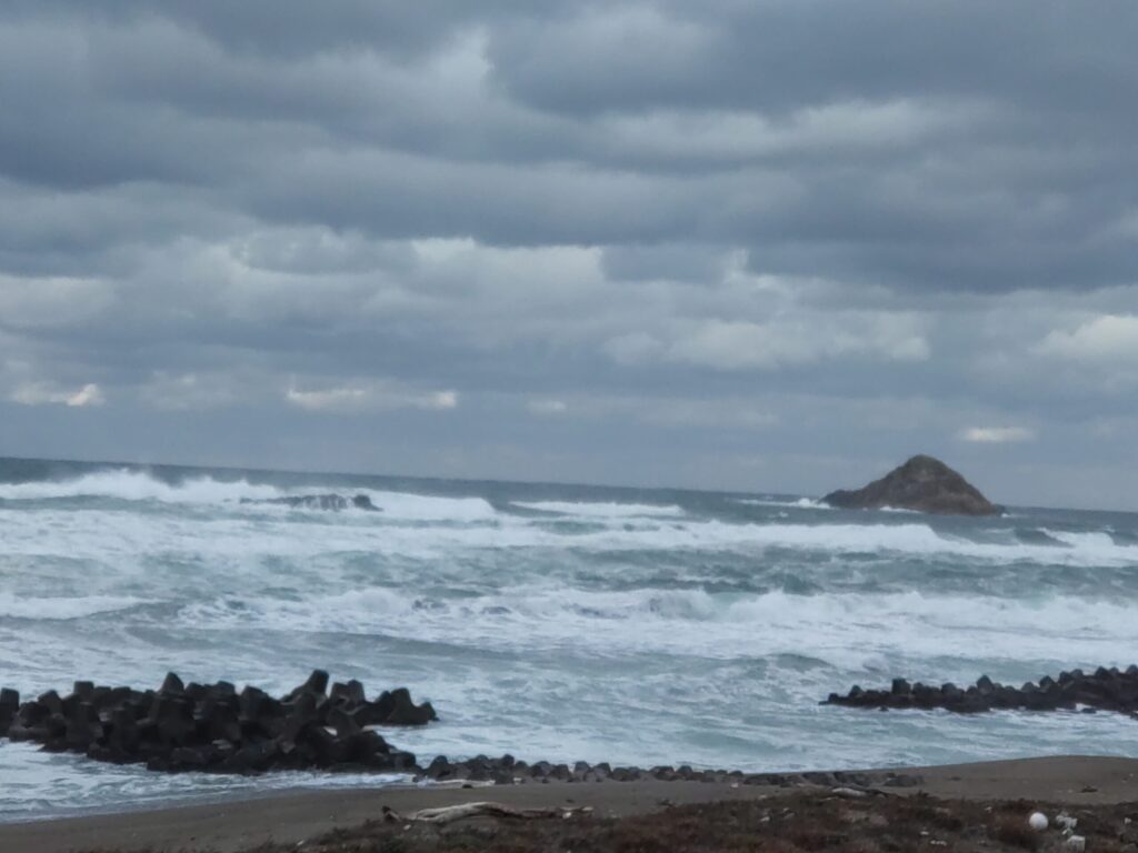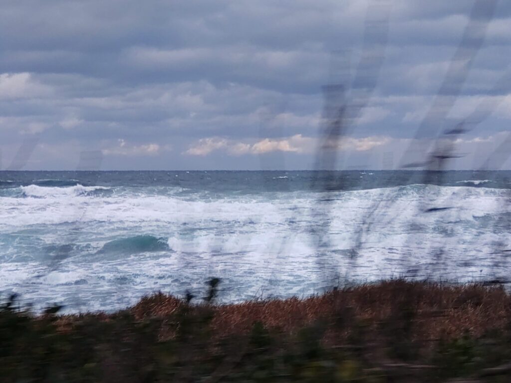 カウンター越しに白兎海岸が綺麗に見え・・見え・・・